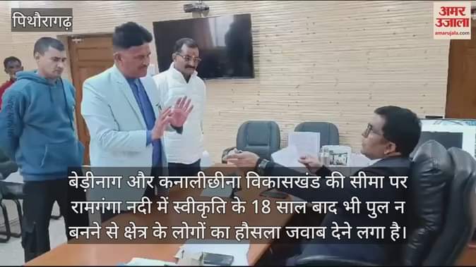 बेड़ीनाग और कनालीछीना विकासखंड की सीमा पर रामगंगा नदी में स्वीकृति के 18 साल बाद भी पुल न बनने से क्षेत्र के लोगों का हौसला जवाब देने लगा है। क्षेत्र के लोगों ने डीएम को ज्ञापन देकर जल्द पुल निर्माण न होने पर आंदोलन की चेतावनी दी।