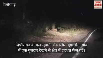 पिथौरागढ़ के थल-मुवानी रोड स्थित बुंगाछीना गांव में एक गुलदार देखने से क्षेत्र में दहशत फैल गई। सड़क से गुजर रहे लोगों ने गुलदार देखा तो उन्होंने यह नजारा कैमरे में कैद कर लिया।