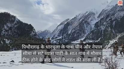पिथौरागढ़ के धारचूला के पास चीन और नेपाल सीमा से सटे व्यास घाटी के सात गांव में मौसम ठीक होने के बाद लोगों ने राहत की सांस ली है। वहीं एसएसबी के जवान गुंजी से लेकर कालापानी तक माइनस 15 डिग्री तापमान में सरहदों की सुरक्षा के लिए गश्त कर रहे हैं।