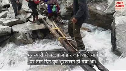 मुनस्यारी से मल्ला जोहार जाने वाले मार्ग पर तीन दिन पूर्व भूस्खलन हो गया था। मार्ग बाधित होने से ग्रामीणों को आवागमन में दिक्कतों का सामना करना पड़ रहा है। नदी पर लकड़ी के लट्ठे डाले गए हैं।
