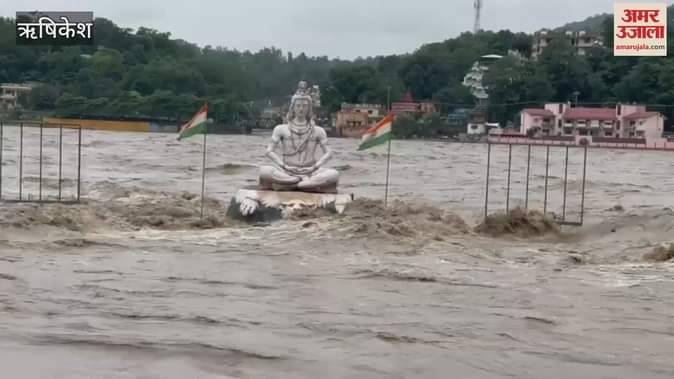 पहाड़ी क्षेत्रों में लगातार बारिश के चलते गंगा का बढ़ा जलस्तर। ऋषिकेश में गंगा चेतावनी रेखा से 1 मीटर ऊपर बह रही। गंगा किनारे घाटों पर एसडीआरएफ और जल पुलिस तैनात। लोगों को गंगा किनारे घाटों पर जाने से रोका जा रहा।