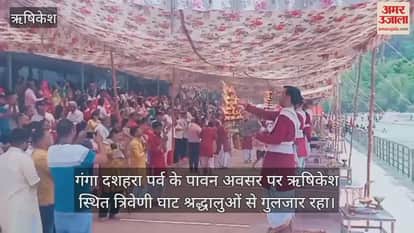 गंगा दशहरा पर्व के पावन अवसर पर ऋषिकेश स्थित त्रिवेणी घाट श्रद्धालुओं से गुलजार रहा। सुबह से ही श्रद्धालु गंगा स्नान के लिए घाट पर पहुंचने लगे और दिनभर आस्था की डुबकी लगाते रहे। स्नान के बाद श्रद्धालुओं ने गंगा मैया की पूजा कर अन्न, धन, वस्त्र आदि का दान किया। कई श्रद्धालुओं ने खिचड़ी, कढ़ी-चावल, खीर आदि का प्रसाद वितरित कर पुण्य अर्जित किया। घाट क्षेत्र में जगह-जगह भंडारे लगाए गए, जिनमें हजारों लोगों ने प्रसाद ग्रहण किया।