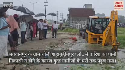 भगवानपुर के ग्राम चोली शहाबुद्दीनपुर प्लॉट में बारिश का पानी निकासी न होने के कारण कुछ ग्रामीणों के घरों तक पहुंच गया। जिसकी सूचना पाकर तहसील प्रशासन की टीम गांव पहुंची । टीम ने जेसीबी की मदद से तालाब के पानी की निकासी की व्यवस्था कराई। पानी की निकासी हो जाने के बाद ग्रामीणों ने राहत की सांस ली। चोली शहाबुद्दीनपुर प्लॉट गांव में बारिश के पानी की अभी तक नाला निकासी नहीं हो पाई है जिसके चलते बारिश का पानी अधिक आने के कारण तालाब ओवरफ्लो होने से बारिश का पानी कुछ ग्रामीणों के घरों तक पहुंच गया।