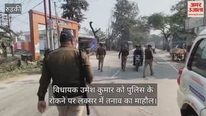 VIDEO : विधायक उमेश कुमार को पुलिस के रोकने पर लक्सर में तनाव का माहौल, पुलिस ने लोगों को आगे जाने से रोका