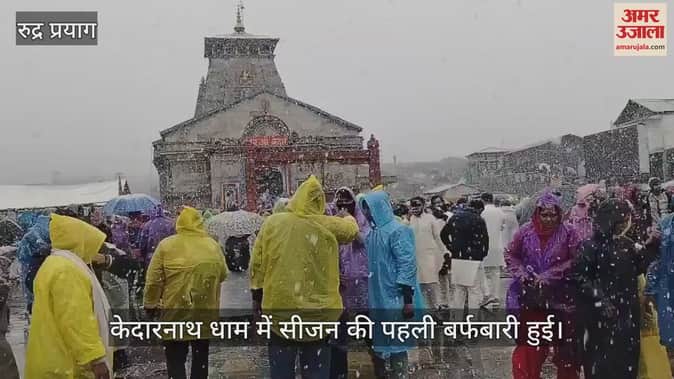 केदारनाथ धाम में सीजन की पहली बर्फबारी हुई। बर्फ की सफेद चादर से ढंके मंदिर परिसर और आसपास की पहाड़ियों के अद्भुत दृश्य श्रद्धालु झूम उठे। बर्फबारी होते ही श्रद्धालुओं में खुशी की लहर दौड़ गई।
