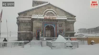 VIDEO: केदारनाथ धाम में लगातार बर्फबारी जारी, दिखा सुंदर नजारा