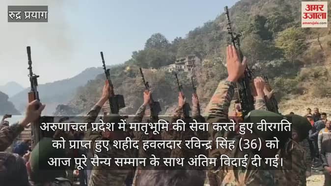 अरुणाचल प्रदेश में मातृभूमि की सेवा करते हुए वीरगति को प्राप्त हुए शहीद हवलदार रविन्द्र सिंह (36) को आज पूरे सैन्य सम्मान के साथ अंतिम विदाई दी गई। आगर, दशज्यूला क्षेत्र के रहने वाले शहीद हवलदार रविन्द्र सिंह 15 गढ़वाल राइफल्स में तैनात थे। अरुणाचल के अलोंग में ही भारत मां की सेवा करते हुए वे शहादत को प्राप्त हो गए।