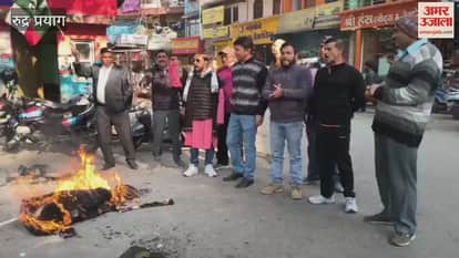 Rudraprayag: Demanding punishment for the culprits in the Ankita murder case UKD staged a protest and burned an effigy