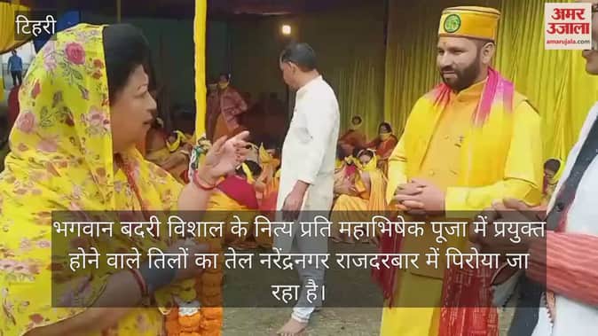 भगवान बदरी विशाल के नित्य प्रति महाभिषेक पूजा में प्रयुक्त होने वाले तिलों का तेल नरेंद्रनगर राजदरबार में पिरोया जा रहा है। टिहरी सांसद माला राज्य लक्ष्मी शाह और अन्य सुहागिन महिलाओं द्वारा यह तीलों का तेल पिरोया जा रहा है। और फिर भगवान बदरी विशाल के तेल कलश गाडू घड़ा में इस तेल को भरा जाएगा। शोभा यात्रा के तहत नरेंद्रनगर राजदरबार से आज शाम को ऋषिकेश प्रस्थान करेगी।दो चरणों में शोभायात्रा तेल कलश बदरीनाथ धाम के पुजारी समुदाय डिमरियों के मूल ग्राम डिम्मर होते हुए बदरीनाथ यात्रा मार्ग से बदरीनाथ धाम 22 अप्रैल को पहुंच जाएगा। 23 अप्रैल को भगवान बद्रीनाथ धाम के कपाट खुलने के साथ ही गर्भ गृह में तेल कलश स्थापित कर दिया जाएगा। इसी तेल से भगवान बद्री विशाल का अभिषेक होगा।