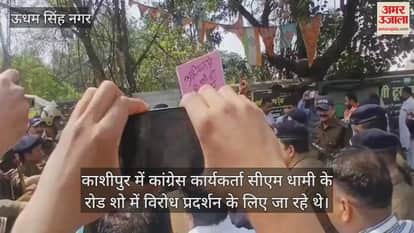 काशीपुर में कांग्रेस कार्यकर्ता सीएम धामी के रोड शो में विरोध प्रदर्शन के लिए जा रहे थे। पुलिस ने सहकारी समिति के पास सभी कांग्रेस कार्यकर्ताओं को गिरफ्तार कर समिति के अंदर पुलिस सुरक्षा में बंद कर दिया। इस दौरान पुलिस से भी कांग्रेस कार्यकर्ताओं की नोकझोंक हुई।