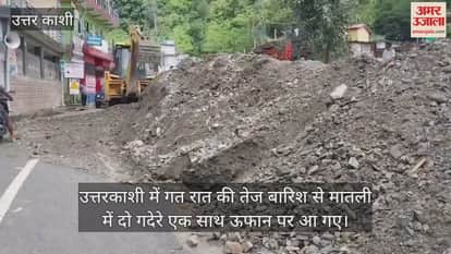 उत्तरकाशी में गत रात की तेज बारिश से मातली में दो गदेरे एक साथ ऊफान पर आ गए। गदेरे में आया मलबा गंगोत्री राजमार्ग मातली दोबाटा के पास फैला गया। मलबा और पानी कई आवासीय भवनों में घुस गया। गंगोत्री हाईवे पर मालबा पसरने से कुछ देर के लिए वाहनों की आवाजाही अवरुद्ध रही। दोनों गदेरे एक साथ आने से मातली के लोग दहशत में हैं। फिलहाल गंगोत्री हाईवे पर मातली के पास दलदल के बीच वाहनों की आवाजाही हो रही है।