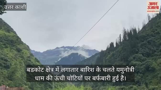 बडकोट क्षेत्र में लगातार बारिश के चलते यमुनोत्री धाम की ऊंची चोटियों पर बर्फबारी हुई है। बर्फबारी और बारिश के कारण धाम सहित आसपास के क्षेत्रों में ठंडी हवाएं चल रही हैं, जिससे ठिठुरन बढ़ गई है।