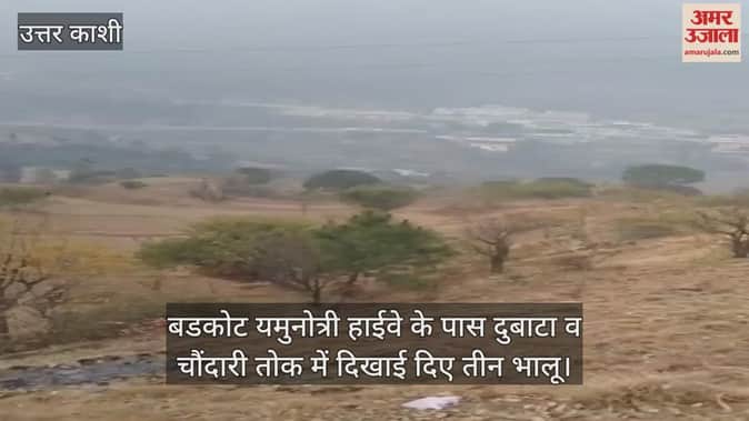 Hindi News ›   Video ›   Uttarakhand ›   Uttarkashi News ›   Three bears were spotted near the Barkot Yamunotri Highway Uttarkashi