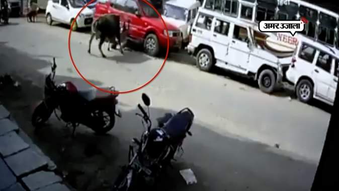 हमीरपुर में एक सांड ने राहगीर को पटक-पटककर मार डाला। इस घटना की तस्वीरें सीसीटीवी में कैद हो गईं। राहगीर सांड के पास से गुजरने की कोशिश में उसे हटा रहा था जिससे नाराज होकर सांड ने राहगीर को टक्कर मारी और शख्स की मौत हो गई। मौके पर कई लोग भी मौजूद थे।