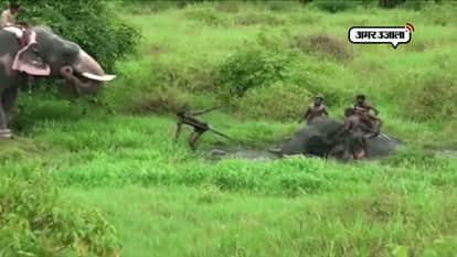 दलदल में फंसे हाथी को ऐसे बचाया 'साथी' ने
