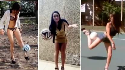 5 इंच की हील पहनकर ये मॉडल खेलती है फुटबॉल, देखिए वीडियो