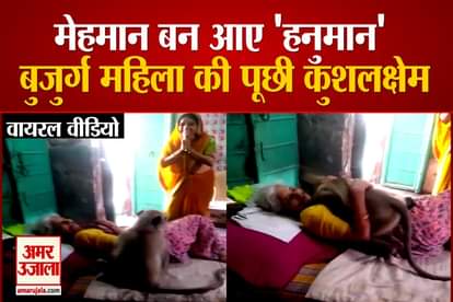 monkey became guest asked for the well being of elderly woman at Jodhpur video viral