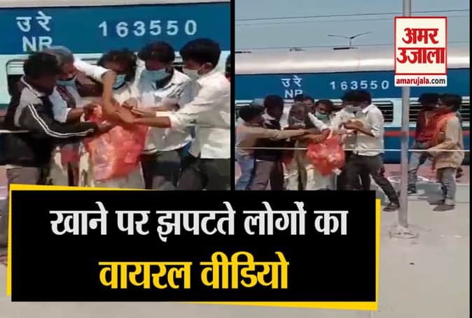 बिहार के कटिहार स्टेशन पर खाने के पैकेट के लिए भिड़े लोग, वीडियो वायरल