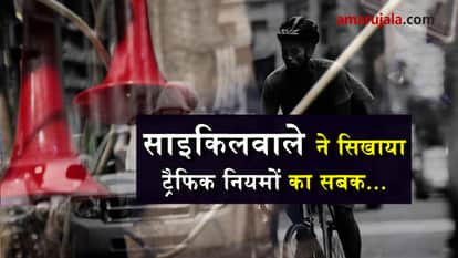 साइकिलवाले ने सिखाया ट्रैफिक नियमों का सबक