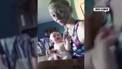 VIDEO: जब मां ने लगाया फेशल मास्क, तो बच्चे का हुआ ये हाल