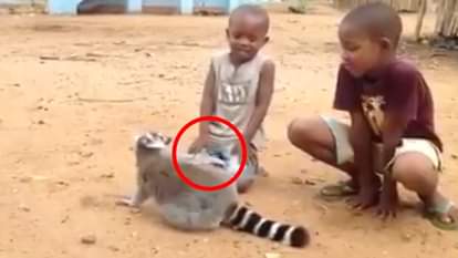 कभी कभी जानवर ऐसी हरकते करते हैं कि हंस-हंस कर पेट दुख जाता है। जरा इसी वीडियो को देख लीजिए जब एक जंगली लेमूर एक गांव में पहुंच गया और दो बच्चे उसके साथ खेलने लगे। लेकिन रह रह कर ये लेमूर बच्चों को उसकी पीठ खुजलाने का इशारा करने लगा।