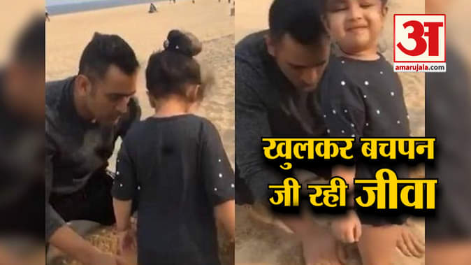 मैच से पहले जीवा संग रेत पर पापा धोनी का COOL अंदाज,देखिए वीडियो