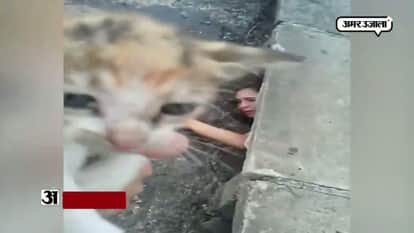 बिल्ली का बच्चा बचाने के लिए लगाई जान की बाजी