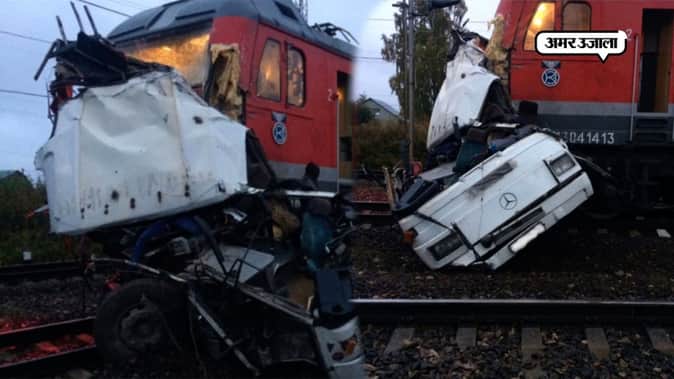 Video : जब ट्रेन ने उड़ा दिए रास्ते में आई बस के परखच्चे