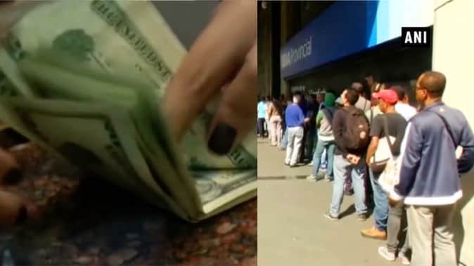 वेनेजुएला में नकदी की किल्लत हो गई है। वेनेजुएला के हालात वैसे ही हो गए हैं जैसे भारत में नोटबंदी के वक्त थे या यूं कहें कि उससे भी बुरे दौर से वेनेजुएला गुजर रहा है। वेनेजुएला की तमाम जगहों पर एटीएम और बैंकों के बाहर लोगों की लंबी कतार देखी जा रही है। बैंकों से लोगों को जितनी जरूरत है उससे आधी रकम दी जा रही है और बाकी रकम बाद में देने के लिए कहा जा रहा है। वेनेजुएला में विदेशी मुद्रा और डॉलर की भी काफी कमी हो गई है। काले बाजार में 20 फीसदी तक कमीशन काट कर लोगों की करंसी बदलकर उन्हें वेनेजुएला का बोलिवर दिया जा रहा है। वेनेजुएला में कैश की किल्लत होने से क्रिसमस और नए साल का माहौल बिलकुल फीका पड़ा है।
