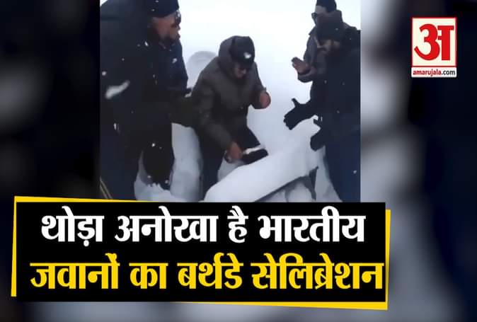 बर्फबारी के बीच भारतीय जवान ने बर्फ का केक काटकर अपना बर्थडे मनाया। जिसका वीडियो सोशल मीडिया पर वायरल हो रहा है।