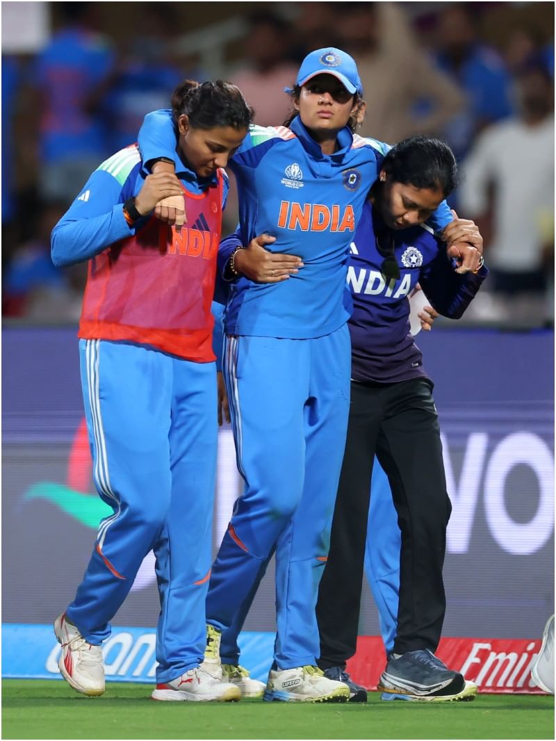 बांग्लादेश के खिलाफ रविवार को नवी मुंबई में खेले गए आखिरी लीग स्टेज मैच में प्रतिका कैच पकड़ते वक्त चोटिल हो गईं, जिसके बाद उन्हें मैदान से बाहर जाना पड़ा था।