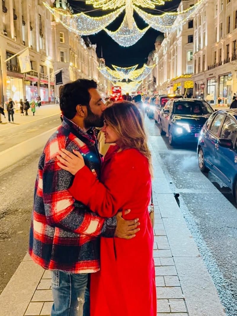 कई तस्वीरों में आरती और उनके पति दीपक चौहान रोमांटिक पोज देते हुए भी नजर आए।