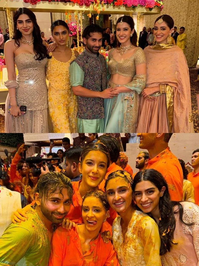 इन तस्वीरों में ओरी के साथ अनन्या, शनाया और खुशी कपूर हल्दी के रंग में रंगे नजर आ रहे हैं