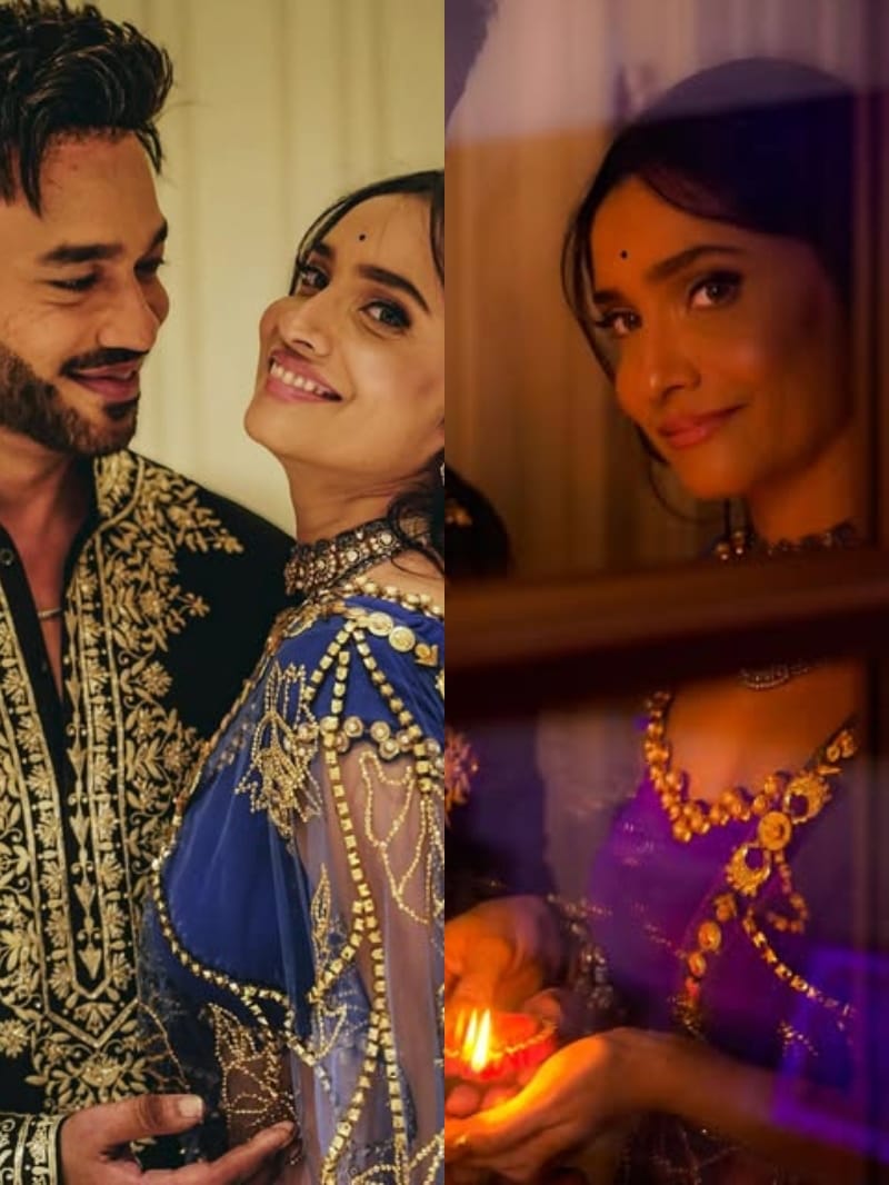 अंकिता लोखंडे ने पति विक्की जैन के साथ धनतेरस पर कुछ तस्वीरें फैंस के साथ शेयर की हैं।