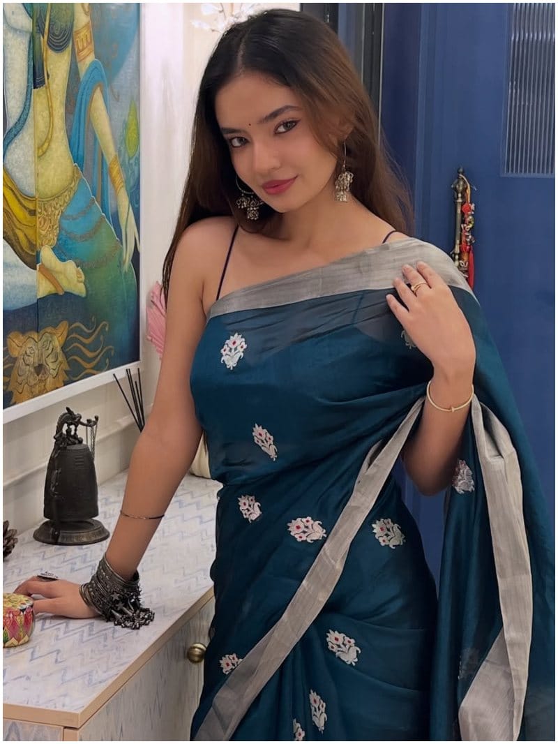 साझा की गई तस्वीरों में एक्ट्रेस डार्क ग्रीन कलर की साड़ी पहने दिख रही हैं।
