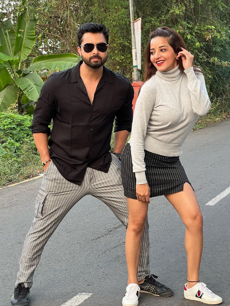 तस्वीरों में आप देख सकते हैं, विक्रांत और मोनालिसा ने मैचिंग कूल लुक को कैरी किया है