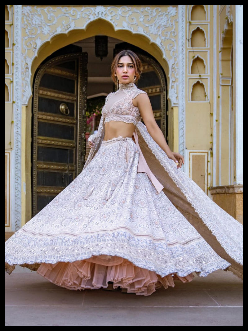 लेटेस्ट फोटोज में भूमि ऑफ व्हाइट कलर के हैवी एंब्रॉयडरी लहंगा पहने बेहद गॉर्जियस नजर आ रही हैं