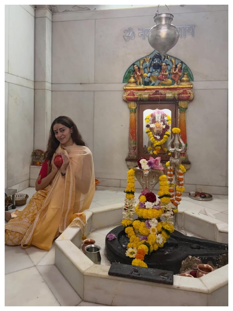 फोटोज में अनन्या ने माथे पर त्रिपुंड भी लगाया है