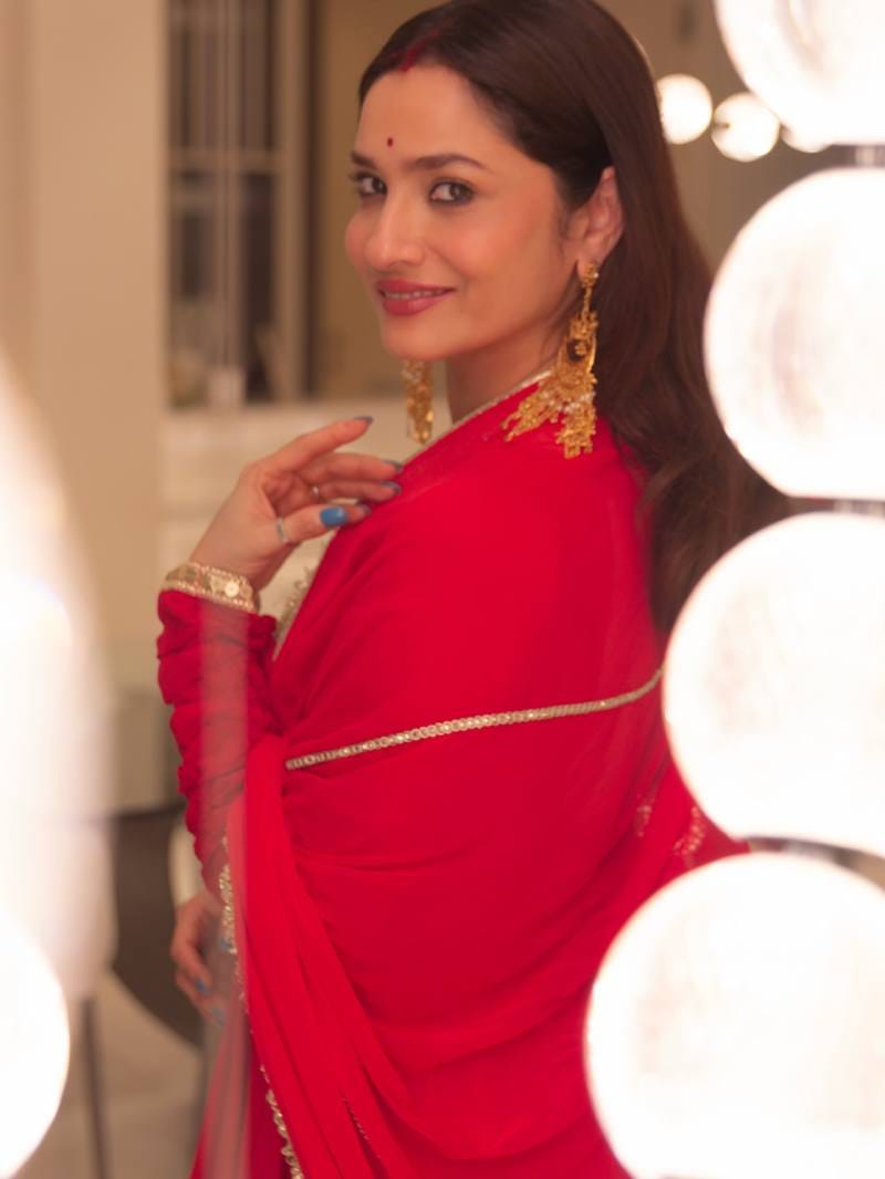 वे चटख लाल रंग की ड्रेस में खूबसूरत लग रही हैं