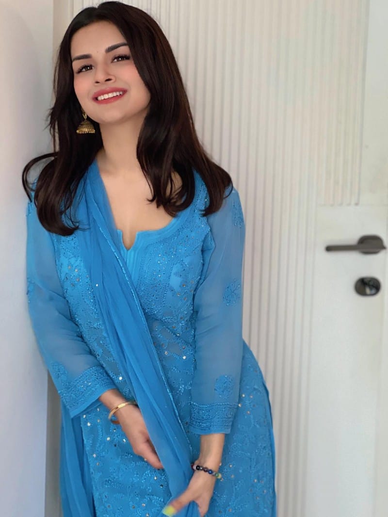 ब्लू कलर के सूट में अवनीत बला की खूबसूरत लग रही हैं