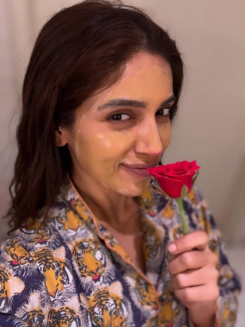 भूमि इन तस्वीरों में फेस पैक लगाए नजर आ रही हैं