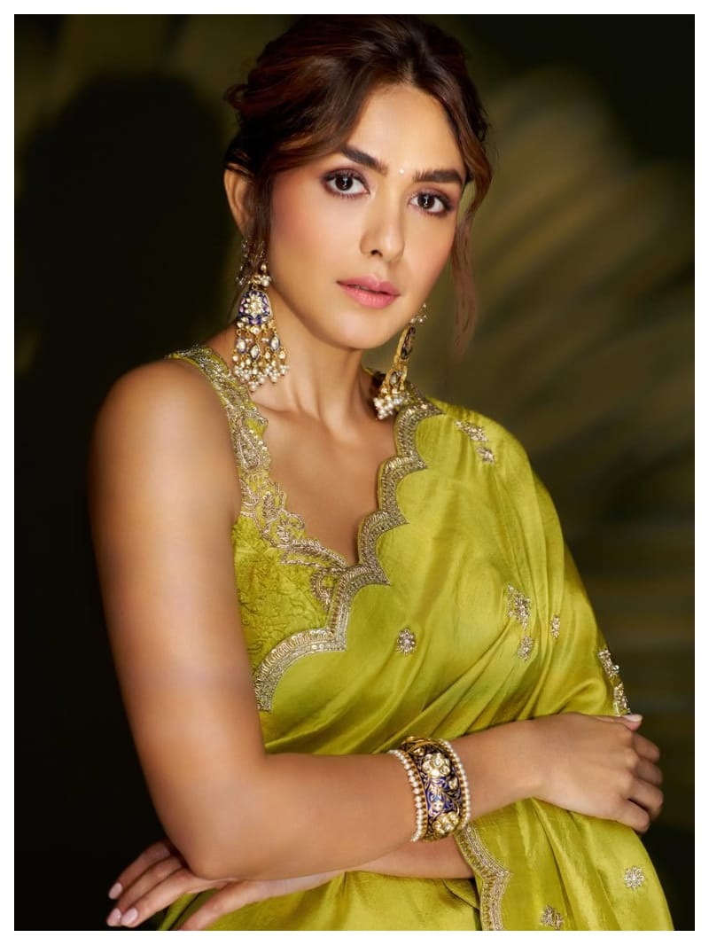 इन तस्वीरों में मृणाल ग्रीन शाइनिंग साड़ी में बेहद खूबसूरत दिख रही हैं