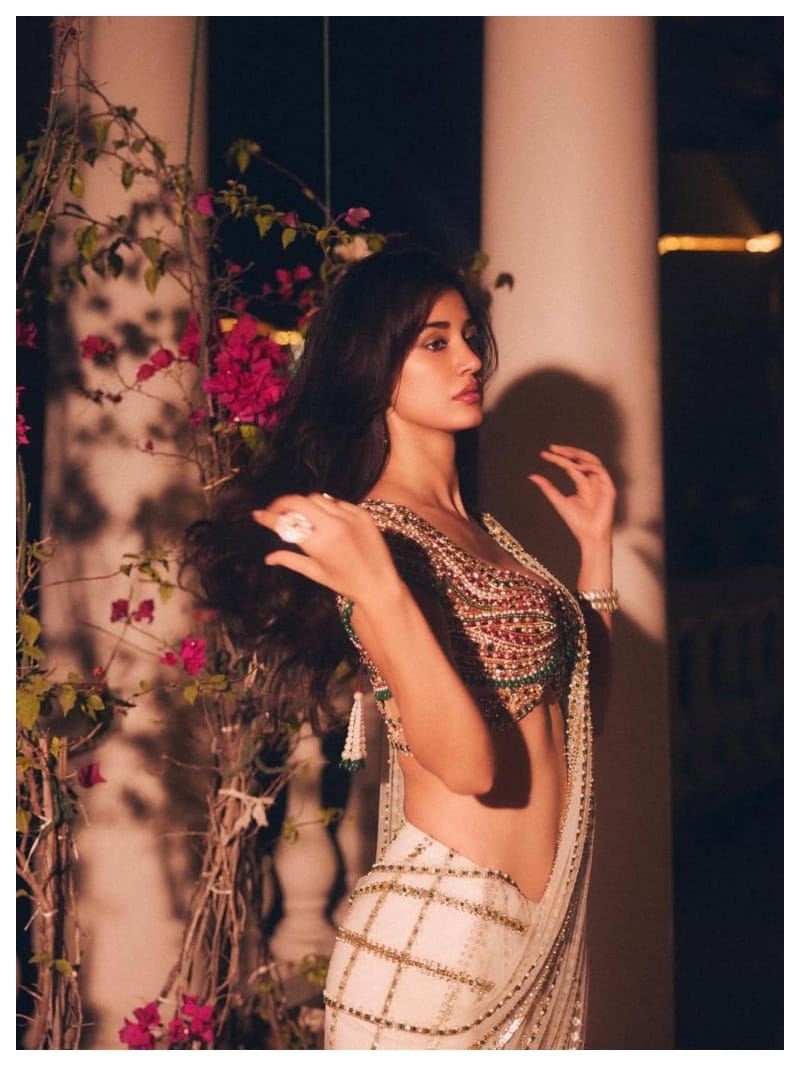 व्हाइट साड़ी और बीडेड टॉप में नजर आईं दिशा