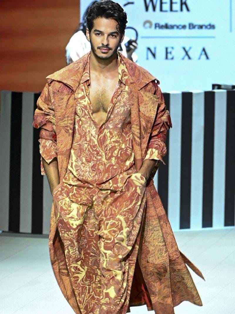 ईशान ने भी अपने डिजाइनर के स्टाइलिश कपड़े पहन फैशन वीक के रैंप पर वॉक किया