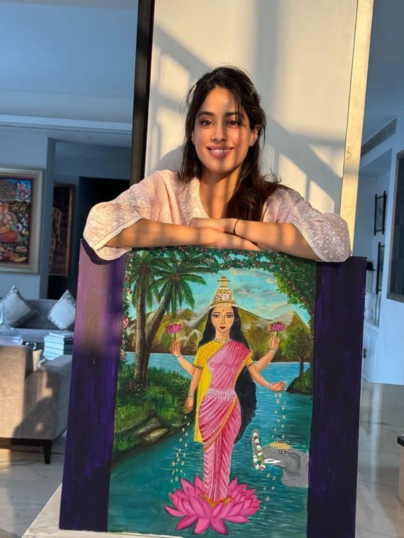 इन तस्वीरों में जान्हवी ने खुद से बनाई पेंटिंग से भी लोगों को रूबरू करवाया