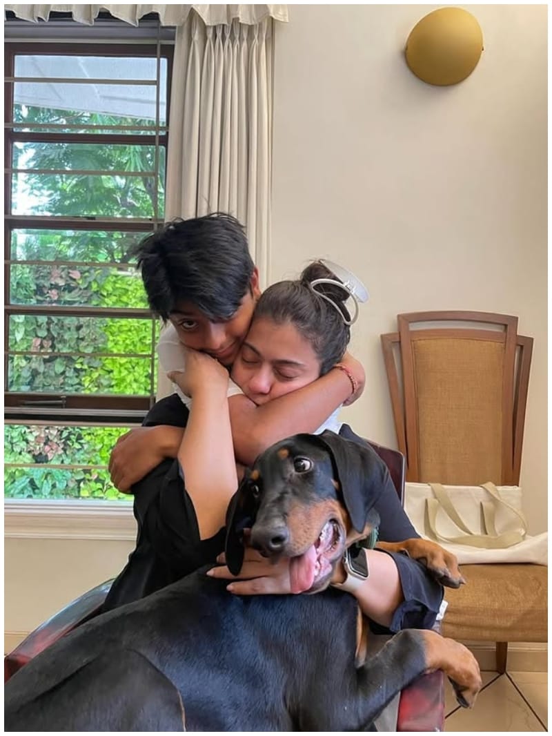 इस तस्वीर में वो अपने पालतू कुत्ते को जन्मदिन की शुभकामनाएं देते हुए उसे गले लगाए दिख रही हैं, जबिक युग उनके गले लगते दिख रहे हैं