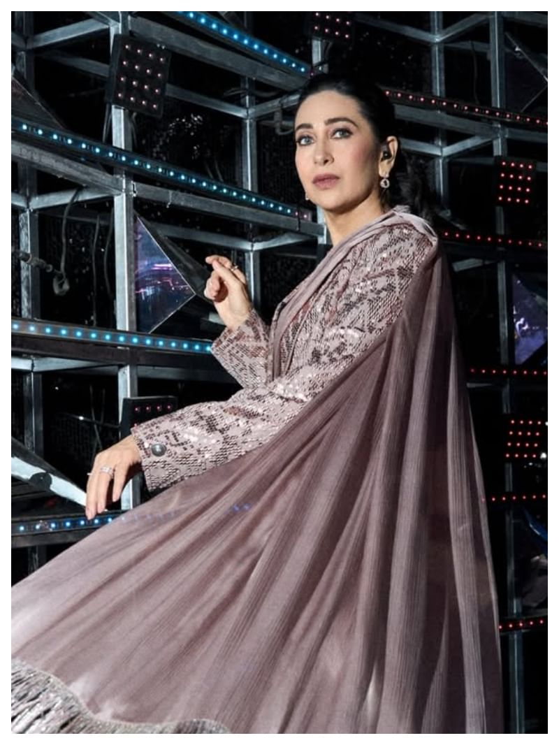 इन तस्वीरों में करिश्मा ग्रे-सिल्वर साड़ी में बेहद खूबसूरत दिख रही हैं