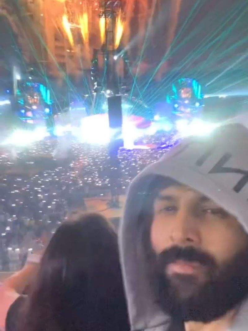 21 जनवरी को यूनाइटेड किंगडम के मशहूर बैंड ने मुंबई में अपना अंतिम शो में प्रस्तुति दी। कार्तिक ने इंस्टाग्राम पर एक वीडियो साझा किया, जिसमें उन्होंने कोल्डप्ले के शानदार शो का एक झलक दिखाई।