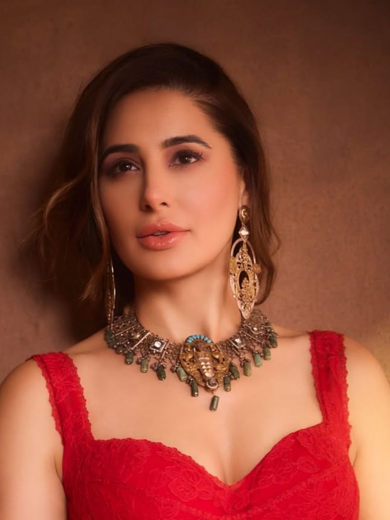 इस लेटेस्ट लुक में नरगिस रेड साड़ी में बेहद खूबसूरत नजर आ रही हैं
