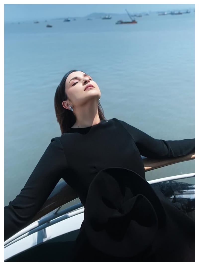 परिणीति ने ब्लैक नेट ड्रेस में फोटोशूट कराया है